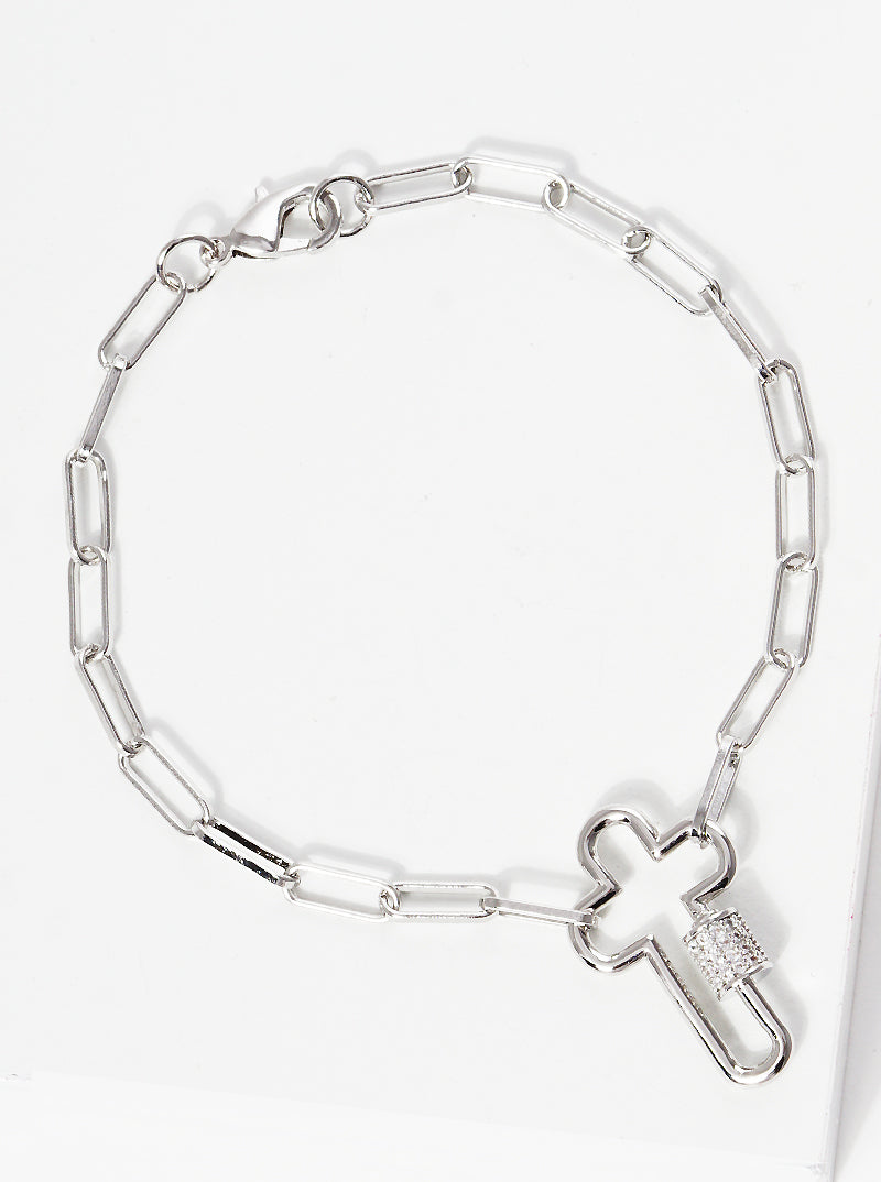 SILVER CROSS BRACELET CLEAR CZ STONES
