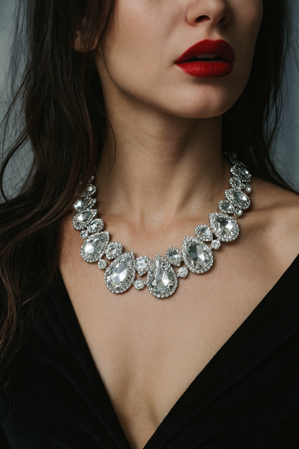 Clear Teardrop Stones with Surrounding Clear Stones Formal Necklace Sets ( 2045 RHCRY)