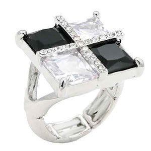 SILVER PLATED CLEAR BLACK CZ STRETCH RING