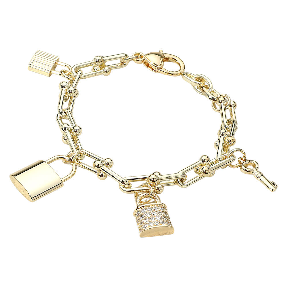 14K GOLD PLATED LOCK CHARM BRACELET CZ STONES