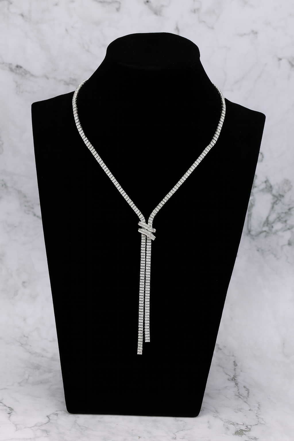 SILVER BRASS NECKLACE CLEAR CZ STONES
